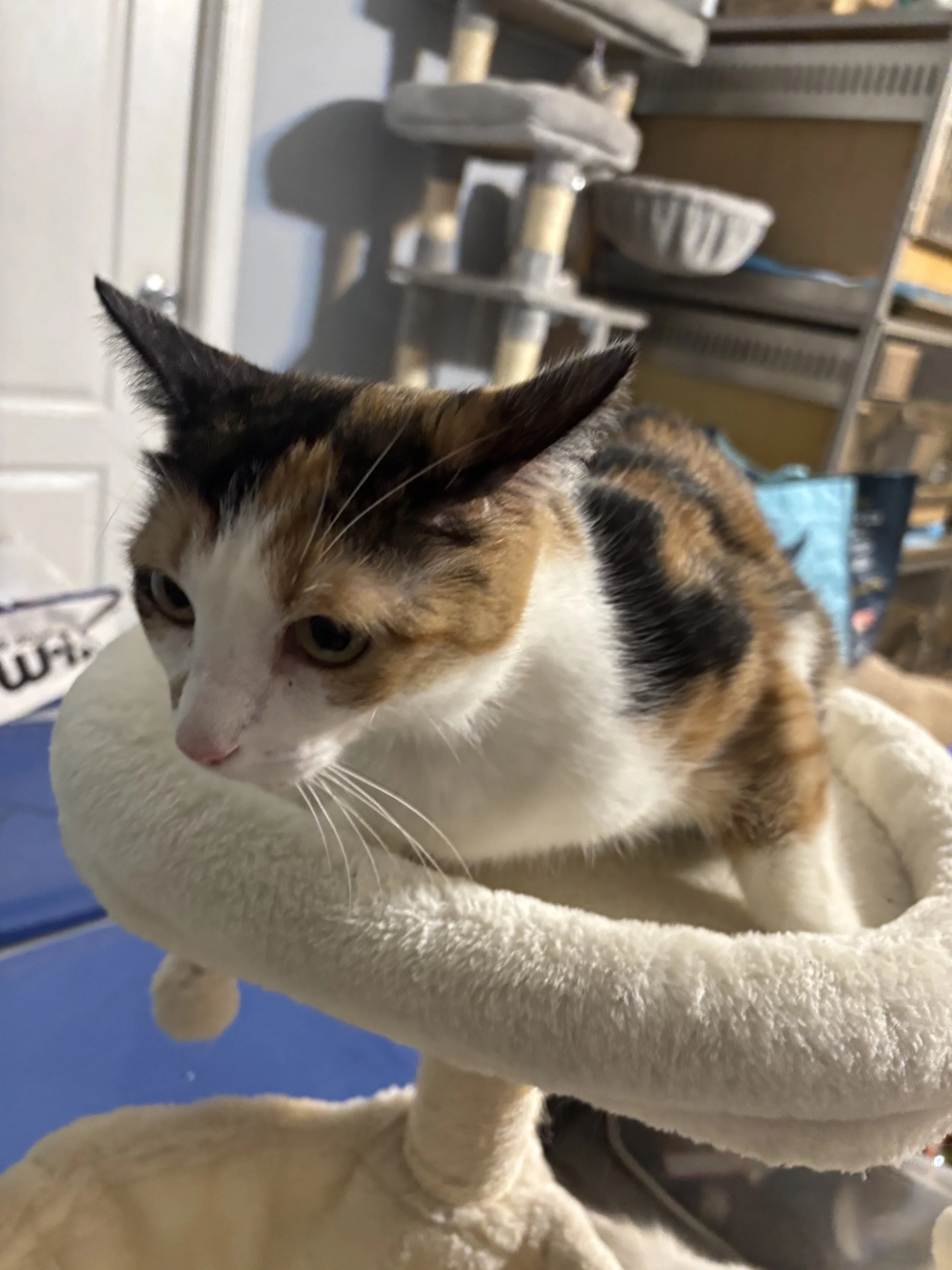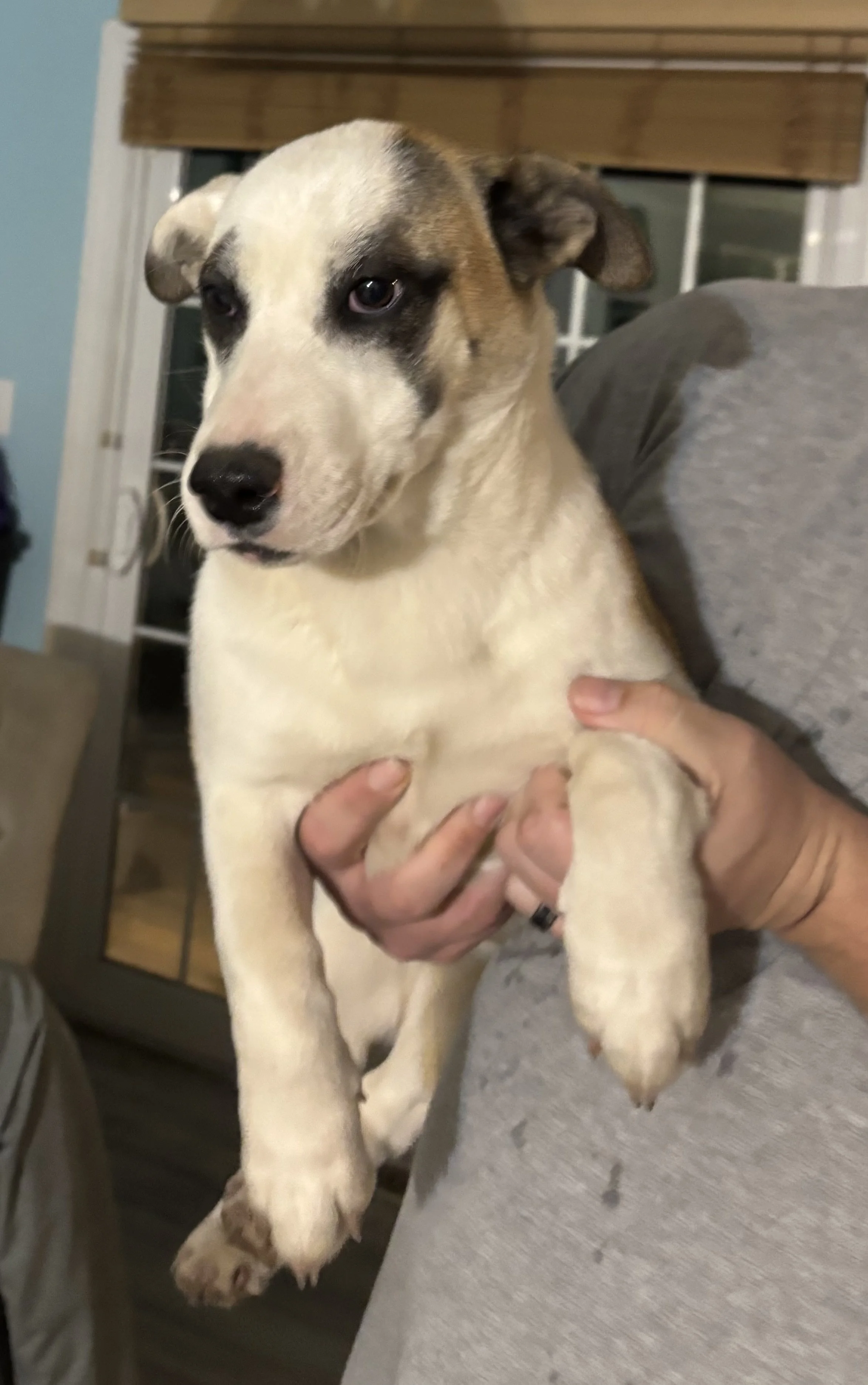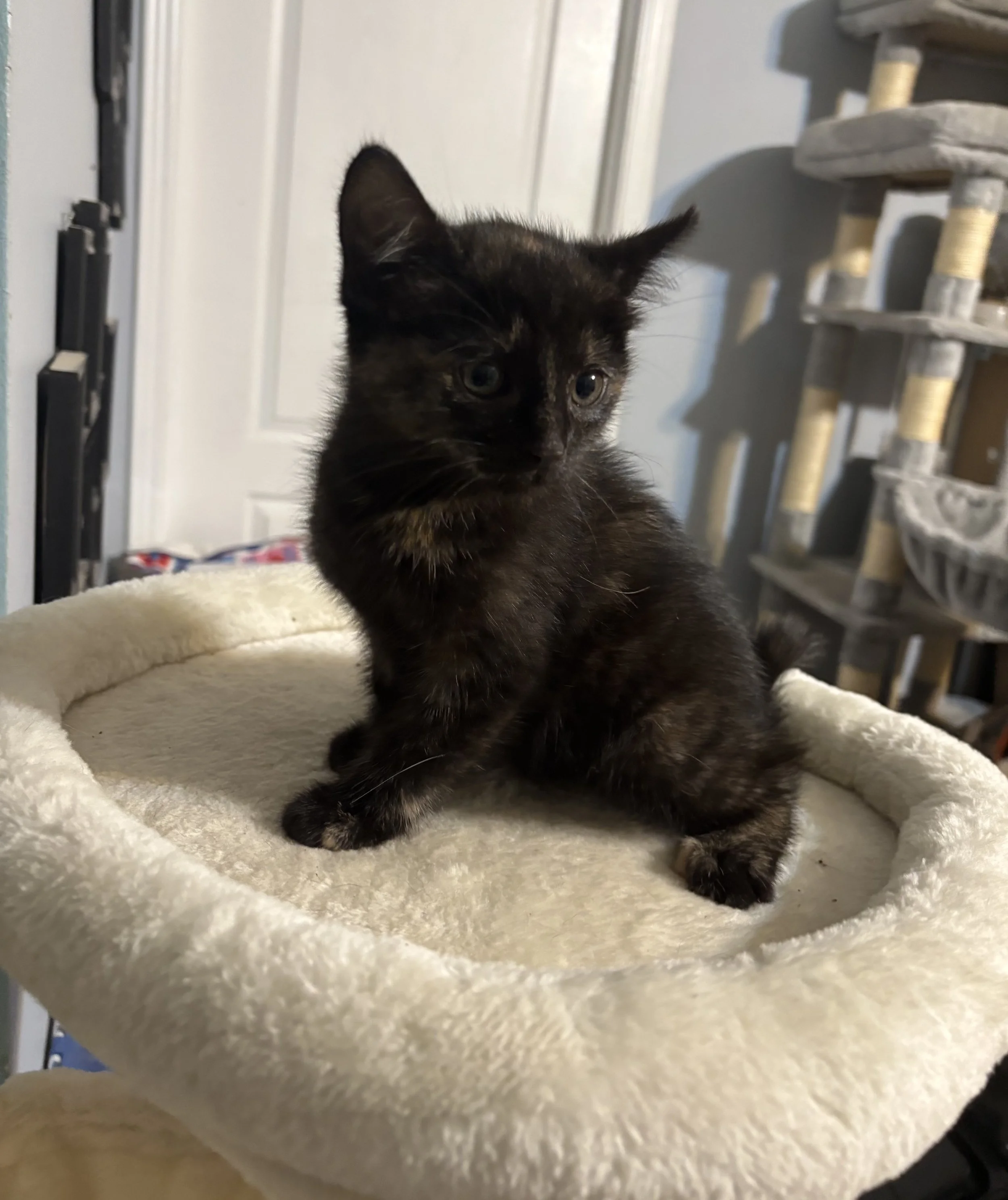 This sweet girl from PR as of 2/22 is about 13 weeks old. Up to date on vet care, is super loving but shy at first. She has the fluffiest tail.
