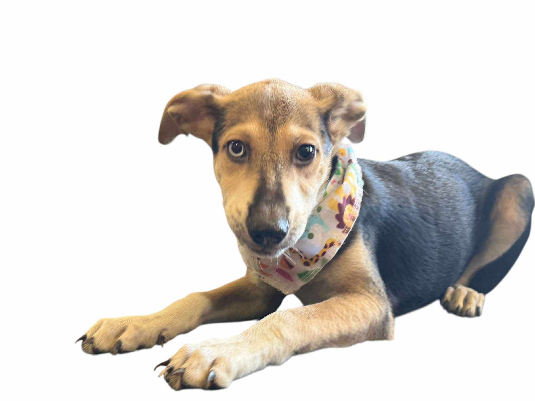 This sweet girl is roughly about 10 weeks old. She is sweet but shy and may take a little while to warm up to someone. Her and her brother Dakota were brought to us by one of our fosters who stated they were found and taken in by family. She is up to date on her vetting and will be micrchippped before leaving.